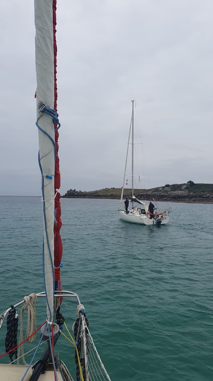 Le KERITY RM 11.80 avec à bord Robert, Jean-Luc, et Jean-Pierre : Parcours Loctudy Kérity, puis Brest pour embarquer Edouard le 1er soir puis si possible nuit à Berteaume. Sont arrivés à Sainte Mary’s pour faire le plein de gazoil alors que nous y étions au mouillage. Ils ont ensuite filé sur Tresco, Bryher, puis St Agnès et enfin sont répartis pour arriver à Brest le 1er juillet, repartis le 2 pour Audierne et aujourd’hui le 3 juillet font route vers Kérity depuis 7h ce matin ! Belle nav pour tous !!!