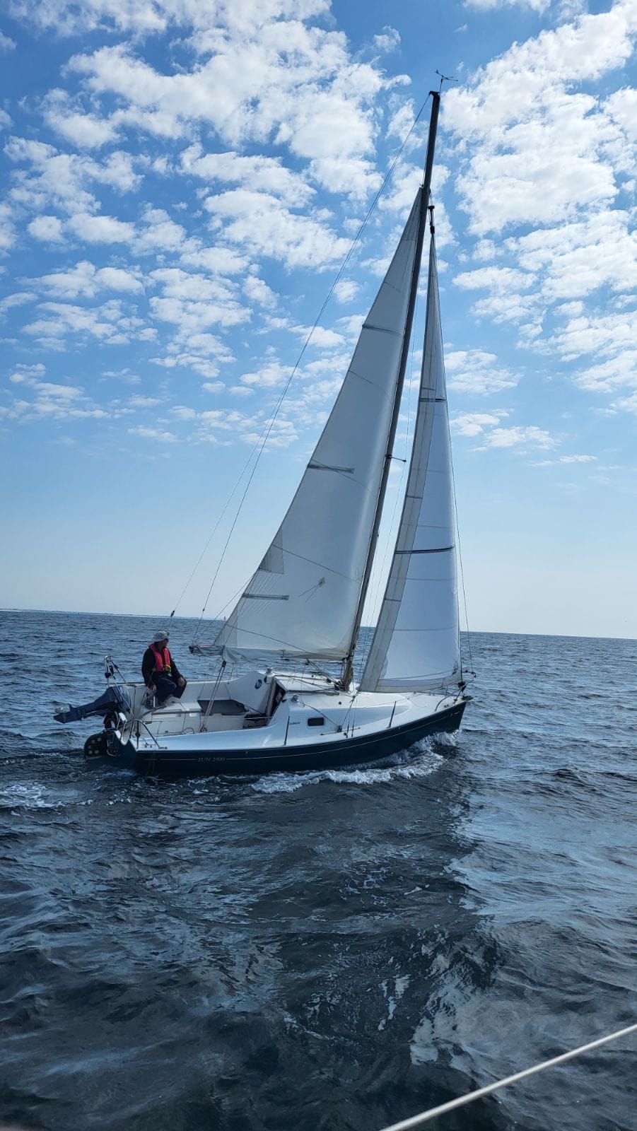 - Les Védéistes ont quitté leur port d’attache de Kérity le mardi 6 à 10h sous un vent d’Est assez fort qui malheureusement va mollir jusqu’à forcer à l’usage du moteur vers 14h après avoir tiré 2 grands bords à la voile entre le large et des retours à la côte vers Loctudy. Une avarie sur COMPER a fait penser un moment à la nécessité de détourner BRIDAN de son arrivée toute proche à La Pie. Finalement la panne moteur sera réparée assez rapidement sur COMPER qui rentrera aux Glénan par la passe des Bluniers. Nos 3 voiliers sont tous à la bouée vers 18h au plus près de LOULOU arrivé 3 heures plus tôt.