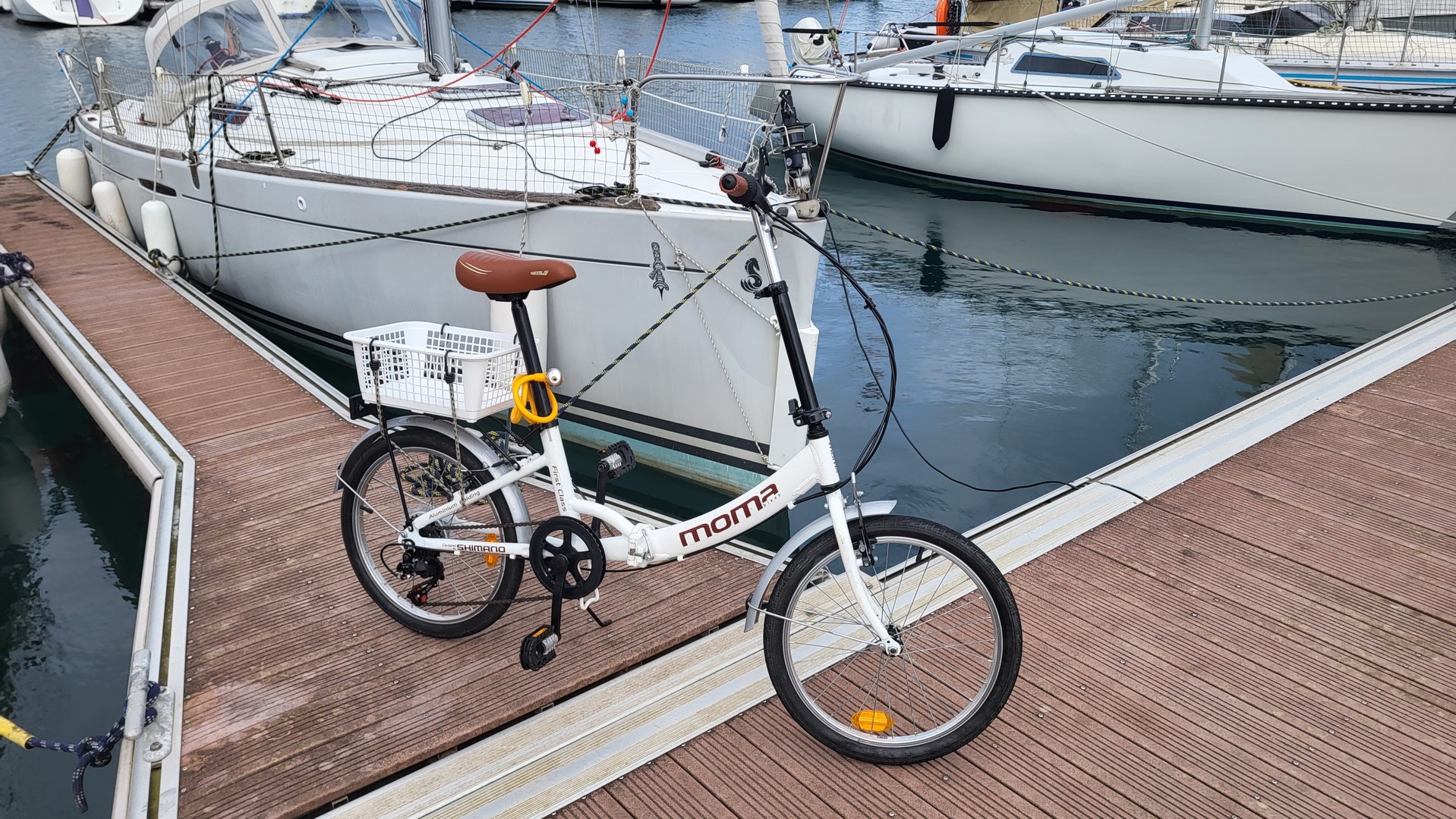 Le soir un show improvisé se déroule sous nos yeux entre 2 pontons. Un OVNI de 40 pieds, sous pavillon anglais pénètre entre les pontons E et F sans avoir la chance d’y trouver place… et les manœuvres ne semblent être assurées par personne. Le vent s’en mêle et pousse la carcasse grise sur toute la rangée des poupes des bateaux aux catways. On aura du grand spectacle. Malgré les aides extérieures, l’OVNI replonge à chaque fois sur la poupe suivante. Un canot à moteur qui marche enfin, mais utilisé à pleine vitesse sans réel contrôle, va finir sous l’annexe d’ENAWEN. Récupérant le bout tendu par ce pilote émérite, Michel et Daniel vont donner du muscle pour aider l’OVNI à sortir son museau d’entre les poupes… on y arrive, mais le folklore va continuer jusqu’à nuit noire. Heureusement, au bilan, il n’y aura pas eu trop de bobo, surtout grâce  à tous les voisins de ponton!