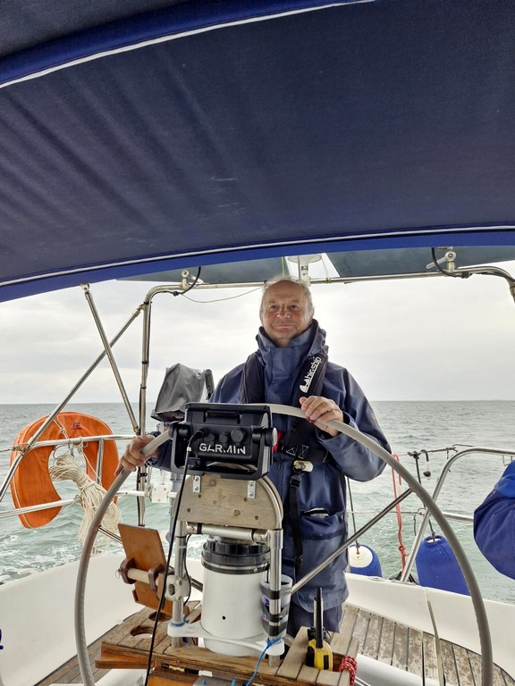 Amarres larguées mardi à 9h45 . La mer est agitée, le vent est soutenu avec des rafales à 22 noeuds. Mais le cap se maintient tout le long des 42 milles nautiques sur un seul bord au prés serré. Le bateau est rassurant, il se gère avec l’assistance d’ une barre à roue douce et précise et un pilote automatique magistralement réactif. Mais le froid nous engourdit et ça gite fort jusqu’à la nausée…le seau a un peu servi !