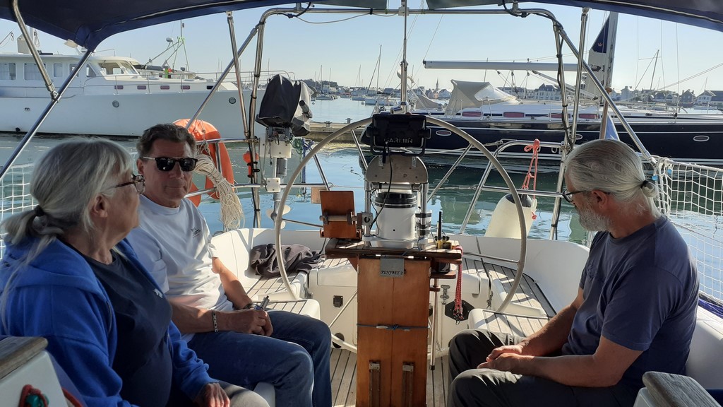 Retour ensemble à Loctudy pour déposer Daniel qui couchera à bord avec Hélène et Michel. Marcel et moi les rejoindrons demain matin pour un départ prévu à 10h.