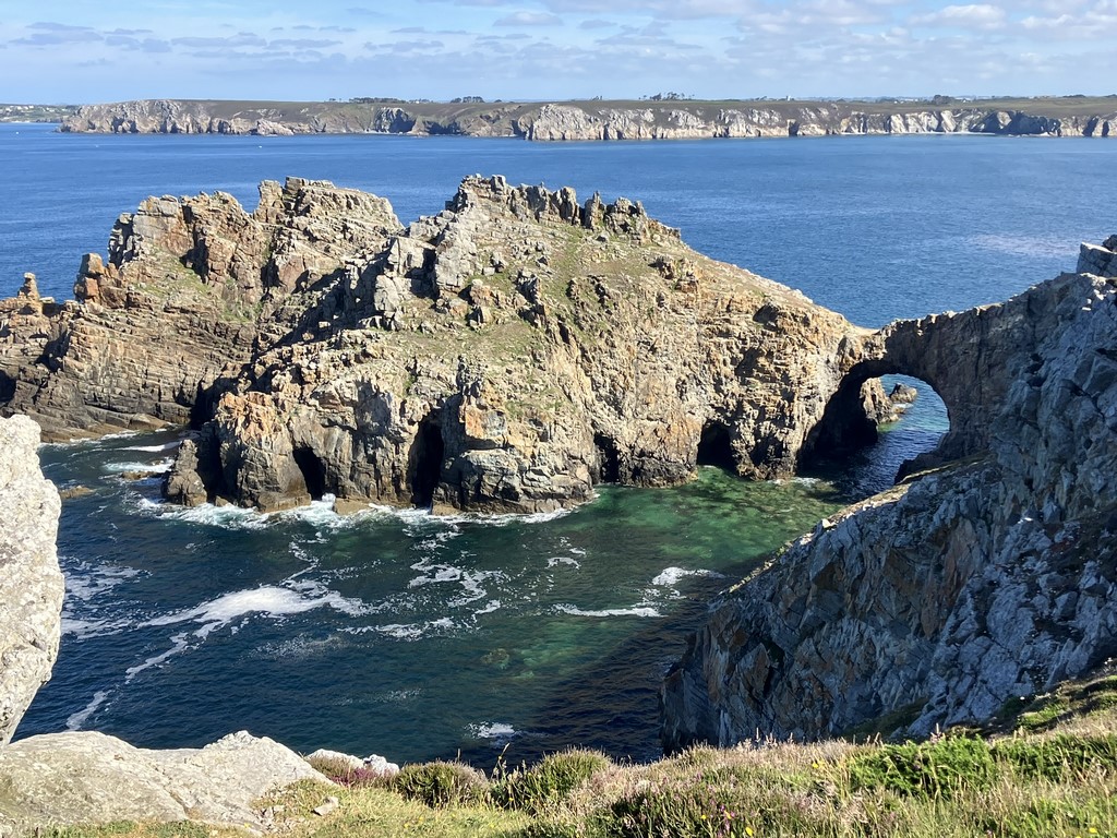 Après un passage du Raz de Sein aux p’tits oignons, nous dégustons une salade de pommes de terre, harengs fumés, oignons, en admirant la côte qui est splendide, très sauvage et très découpée avec les pointes du Van, Pointe de Castelmeur, Pointe de Brézellec, la réserve du Cap Sizun, puis le phare du Millier qui annonce la proximité du port de Tréboul où nous passerons la soirée.
