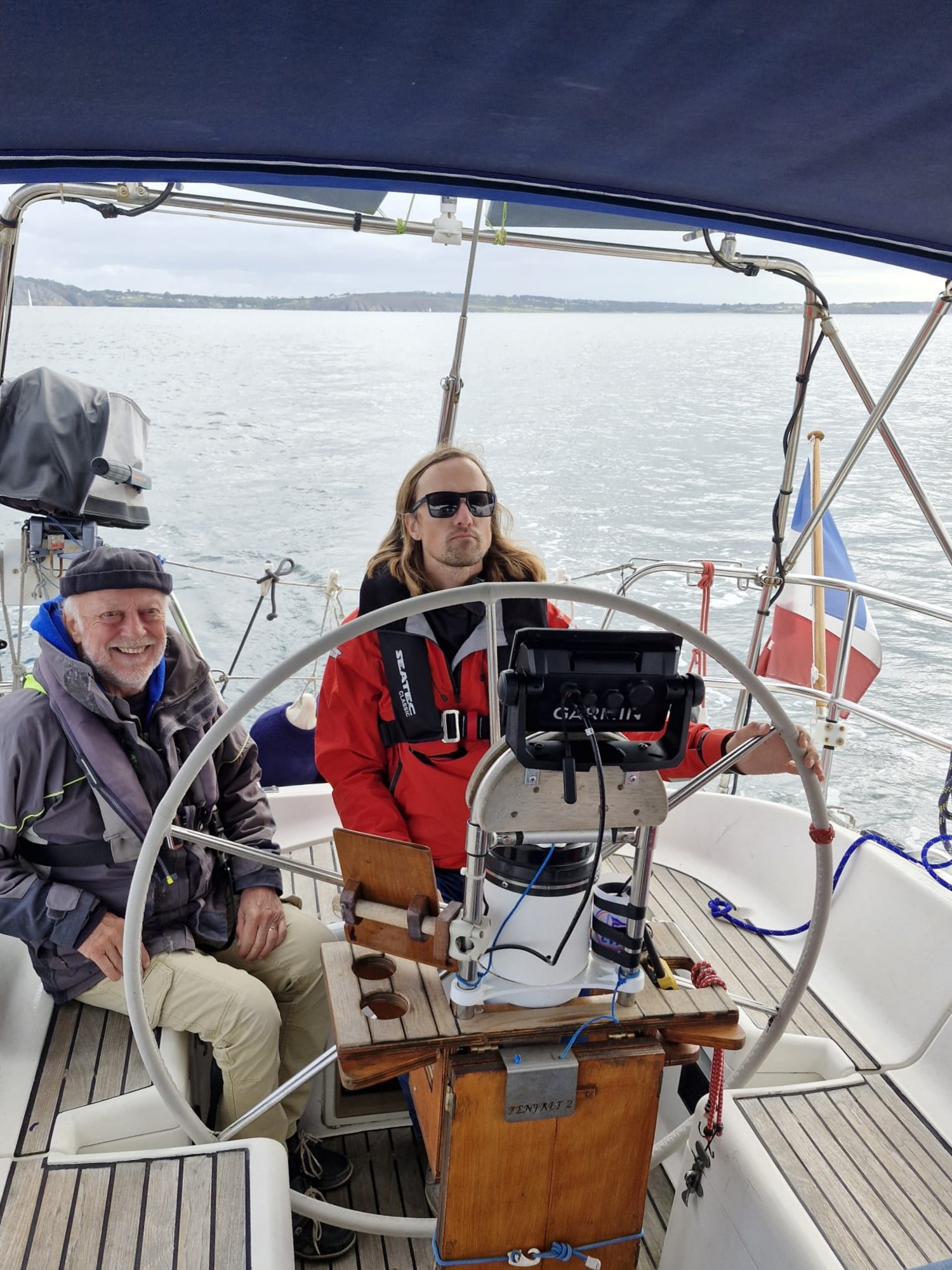 Nous recevons des nouvelles des 2 autres équipages : KERVILY est bien parti et nous rejoindra sans doute ce soir à Douarnenez, et FRI FURCH part ce matin de l’île de Sein, cap sur Douarnenez.