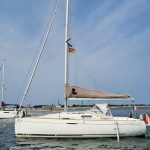 La météo s’étant assagie, plusieurs voiliers se sont retrouvés au-delà des Etocs. Entre 15h et 17 h, NOZ GWENN ayant embarqué Anne G. nous avons croisé AHEL, MARPLIJ, et Gégé est venu me faire un petit coucou avec son trimaran avant que je ne largue mes amarres …tous ce beau monde en mode balade douce. Une belle opportunité aussi pour valider l’efficacité du tendeur « bricolé » pour la drosse du Code 0 .